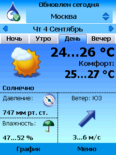 Приложение Gismeteo не только охватывает все мобильные устройства, но и сохраняет характеристики «умного» приложения, то есть предлагает идентичное функциональное наполнение, как для КПК и смартфонов, так и на всех Java-телефонах. Программа отличается превосходным оформлением, включая анимированные иконки погоды и прогноз на 5 дней в виде графика, что делает представление погодных данных максимально наглядным. Gismeteo для мобильных обеспечивает прогнозом погоды на 5 дней вперед и содержит информацию о погоде для любого уголка России, курортного города и столиц мира от ведущего российского метеопровайдера. Яркое оформление, удобное управление в сочетании с богатой функциональностью реализовано в новом приложении для мобильных телефонов, которое компактностью, функциональностью и удобством использования вызывает все возрастающий интерес среди ключевых российских вендоров и партнеров компании Paragon Software. Форма представления данных, оптимизация управления под экран мобильного телефона позволяют узнать прогноз погоды на 5 дней с одного взгляда, без необходимости пролистывать длинные страницы мелкого текста WAP-сайтов. Чтобы быть в курсе последних сводок погоды, мобильный телефон должен быть подключен к мобильному интернету. Gismeteo поддерживает несколько вариантов подключения: через GPRS, EDGE/UMTS. Причем объем потребляемого трафика составляет 7 кб, что значительно меньше трафика, необходимого для скачивания прогноза с WAP-сайтов. Для удобства пользователей программа Gismeteo для мобильных будет выпускаться в двух вариантах: с подпиской на год (450 руб.) и подпиской на 3 месяца (150 руб.). Основные возможности Gismeteo для мобильных телефонов: