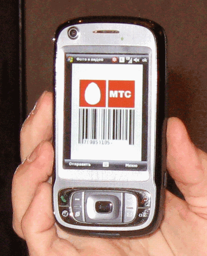 экран телефона с штрих-кодом счета абонента "крупным планом"