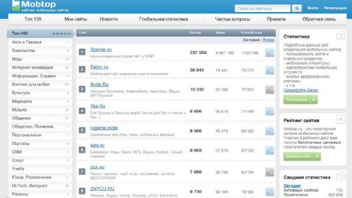 УслугиMobTop.ru открывает регистрацию25.06.2011, Рейтинг мобильных сайтов MobTop.ru, завершил процесс бета-тестирования и открыл регистрацию для всех желающих. Одним из основных трендов развития сети Интернет остается ее ориентация на мобильных пользователей. С другой стороны, те, кто использует для выхода в Сеть свой мобильный телефон, зачастую не очень искушены в Интернет-серфинге, но с удовольствием изучают новые сайты, постоянно находясь в поиске интересных тематических ресурсов, предлагающих удобную мобильную версию. Для того чтобы предложить пользователям мобильных Интернет-сайтов качественный ресурс, WEB-разработчики и менеджеры Интернет-проектов постоянно собирают статистику посещаемости. Их интересует, в какое время суток к ним приходит наибольшее количество пользователей, какие мобильные устройства они используют и к какому оператору связи подключены. Всю эту информацию помогает собирать MobTop.ru – система анализа посещаемости мобильных сайтов. MobTop.ru позволяет вести статистику по следующим параметрам: • Общая посещаемость по дням и часам (количество посетителей, просмотров) • Источники переходов • Мобильные операторы пользователей с градацией по странам и регионам • Производители и модели мобильных устройств пользователей • Разрешение экрана • Браузер • Операционная система • Поддержка cookies Помимо этого, MobTop.ru – это рейтинг мобильных Интернет-ресурсов, ориентированный и на самих пользователей. Все зарегистрированные на MobTop.ru мобильные сайты разделены на категории в зависимости от тематики, а значит любой человек может зайти на мобильную версию рейтинга http://m.mobtop.ru и найти ресурс на свой вкус. Таким образом, Интернет-ресурс MobTop.ru остается и средством обмена трафиком между сайтами, то есть зарегистрированные в рейтинге ресурсы получают бесплатных целевых посетителей. Сегодня зарегистрироваться на MobTop.ru могут все желающие ― в рейтинге уже представлено более 700 мобильных сайтов, посещаемость мобильной версии http://m.mobtop.ru продолжает расти. Уже на данный момент Mobtop посетили почти 110 млн. пользователей, а количество просмотров за месяц равно 1 790 192 109, ведь только за один день сайт посещают больше 100 тыс. человек. Регистрация остается совершенно бесплатной – все, что требуется для того, чтобы начать использование эффективного инструмента анализа посещаемости, разместить счетчик MobTop.ru на своей мобильном сайте. Коллектив MobTop.ru планирует активно развиваться в будущем, расширяя функционал портала и привлекая новые ресурсы и посетителей. © , пресс-релиз Публикации по теме: ОбсуждениеВ форуме нет сообщений.