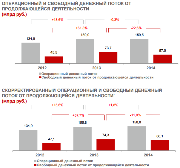 АБ: О, в МТС в сентябре 2014 года даже была индексация зарплаты. Редкое явление. Если серьезно, то рост чистой операционной выручки - это само собой неплохо, поскольку расходы на возобновление работы в Узбекистане не будут вечными. Расходы на оплату труда сотрудников, вероятно, тоже можно будет постепенно поджать. Рост административных и иных расходов - на заметку руководству, здесь нужно было бы не показывать рост. Роуминговый вклад понятен - рост себестоимости и жесткая конкуренция, здесь или надо отдавать рынок или смириться со снижением доходности. Расходы на ИТ сейчас все подрежут, но надо при этом сохранить ключевых людей и структуру. Расходы на электроэнергию можно снижать постепенной заменой оборудования 2G первых поколений, если еще где осталось. Аренда - вот еще один ключ к снижению расходов и удержанию высокой доходности. ++
