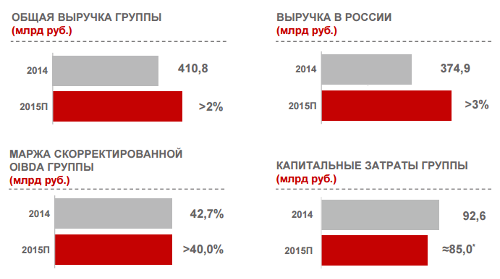 МТС наблюдает влияние волатильности национальных валют России и Украины на динамику выручки и показателя OIBDA Группы МТС наблюдает значительную макроэкономическую неопределенность и волатильность на основных рынках присутствия, что может в дальнейшем влиять на пересмотр прогнозов по выручке и OIBDA и сказаться на операционных и финансовых результатах Группы АБ: Об этом много не скажешь. Выглядит все как стабильность, но если с курсом что-то будет происходить, то легко может превратиться в красные цифры в отчетах. Наращивание покрытия LTE от достигнутого уровня требует куда больших вложений и обещает куда меньший прирост доходов. Поскольку компания не будет наращивать вложения, то и заметный прирост доходов вряд ли возможен. Напротив, рост конкуренции на рынке связанный с планами Tele2, затруднит МТС получение запланированных доходов. ++