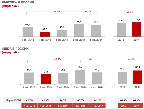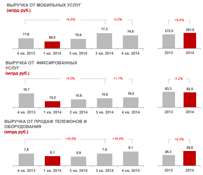, редактор MForum.ru . (*) За вычетом дохода в размере 6,7 млрд рублей (3,6 миллиарда рублей в третьем квартале 2014 года и 3,1 миллиарда рублей в четвертом квартале 2014 года) от возобновления операций в Узбекистане МТС: На динамику чистой прибыли в четвертом квартале повлияли: