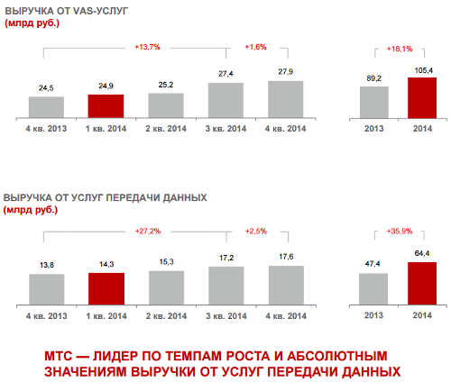 АБ: 22,1% - доля выручки от услуг передачи данных в структуре мобильной выручки оператора. Т.е. LTE пока не дает и 10%, вероятно. В 2015 году здесь будет рост. ++