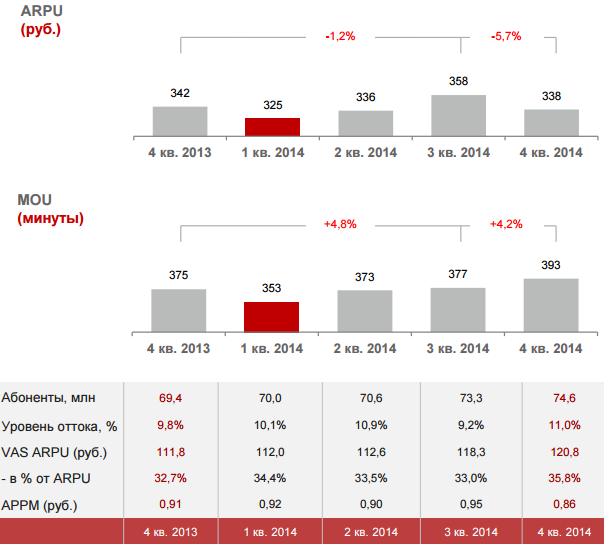 , редактор MForum.ru МТС: Сокращение ARPU в годовом исчислении обусловлено ростом доли бесплатных внутрисетевых вызовов в рамках пакетов, а также снижением объема международных вызовов Сокращение ARPU в квартальном исчислении отражает традиционные сезонные тенденции снижения доходов от роуминга Рост MOU в годовом исчислении вследствие усилий компании, направленных на стимулирование пользования голосовыми услугами связи ++