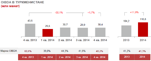 МТС: Рост доходов в годовом исчислении обусловлен увеличением выручки от услуг передачи данных и контентных сервисов в результате развития сетей и продвижения услуг передачи данных Рост доходов в квартальном исчислении вследствие запуска тарифного плана Smart, рассчитанного на пользователей услуг голосовой связи и передачи данных Существенное сокращение OIBDA обусловлено: