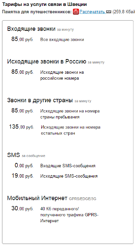 Компания МТС снизила тарифы на звонки до 70% для 26 стран, в частности: Турция, Египет, Испания, Кипр, Болгария, Черногория, Корея, Латвия, Литва, Эстония. Базовые роуминговые тарифы в Прибалтике и Швеции снизятся на 71%, в Финляндии - на 62%, в Болгарии – на 54%, на Кипре – на 23%, в Испании, Турции, Египте, Черногории – на 8%. Минимальная стоимость минуты разговора в рамках базового тарифа для абонентов МТС за рубежом составит 25 рублей. Пример роуминговых расценок для абонентам МТС с тарифом Супер МТС в поездке в Швецию: Пример роуминговых расценок для абонентам МТС с тарифом Супер МТС в поездке на Кипр: При этом в МТС говорят также о планах изменить роуминговые цены в большую сторону на ряде направлений. Экономический кризис в России вместе со снижением курса рубля существенно усложнили для операторов экономически оправданное оказание услуг роуминга. Снизилось число россиян, выезжающих за рубеж. При этом возрасли средние удельные, на одного абонента, расходы операторов в рублях, поскольку расчеты с контрагентами по услугам роуминга идут в валюте. В новогодние праздники, например, объем интернет-трафика в роуминге абонентов МТС вырос на 23%, количество пользователей международного роуминга сократилось на 25%, объем отправленных сообщений сократился на 28%, общий объем звонков в международном роуминге сократился на 26%. В этих условиях достаточно сложно для операторов удерживать рублевые цены на роуминг. Тем удивительнее инициатива МТС снизить тарифы. Вероятно ее можно объяснить только конкуренцией с другими операторами "большой тройки". ++