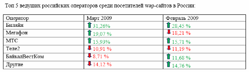 В статистике участвует более 200 ресурсов. За март 2009 – 10 109 360 хостов и 72 682 227 хита. За февраль 2009 – 9 954 413 хостов и 73 131 240 хита.